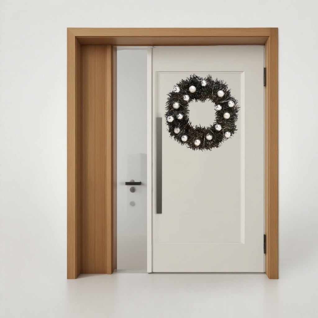 Make a bold statement with this 24-inch Black-Themed Luxury Christmas Garland, designed with elegant silver ball ornaments and festive Christmas letter accents for a modern, high-contrast holiday look.