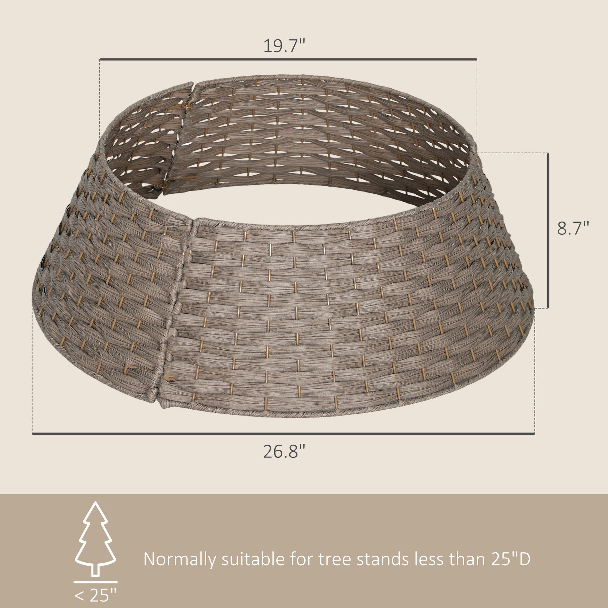 The woven texture adds a handcrafted, rustic charm, while the PE and metal construction ensures durability, stability, and long-lasting seasonal use. The structure keeps pets and little hands away from the tree base, ensuring a cleaner and safer holiday environment.