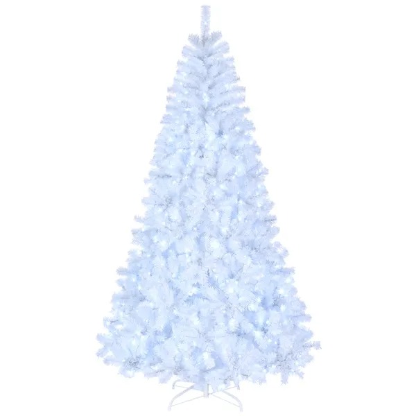 7FT Cool-Glow White Christmas Tree — 1346 Branch Tips, 500 LED Lights, 8 Lighting Modes, Automatic Lift Structure